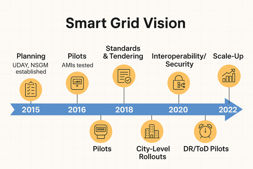 The National Smart Grid Mission (NSGM), set up in 2015, has a chance to bring order to tendering and standards. If it can publish reference specs, promote shared services where scale helps (a state-level MDMS, for example), and nudge everyone towards a small set of interoperable choices, it will save the sector years.