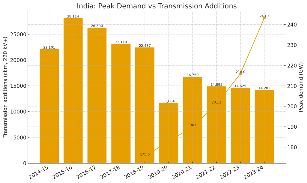 Caption: India’s peak demand in 2023 has surged faster than infrastructure additions.