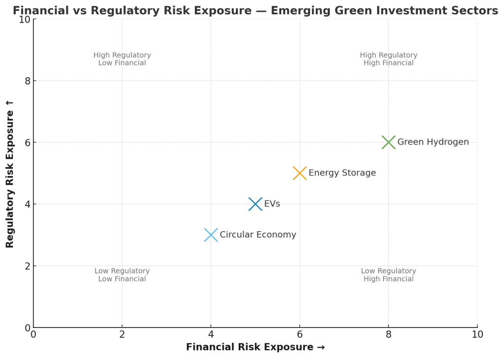Two-axis chart mapping “Financial vs Regulatory Risk Exposure