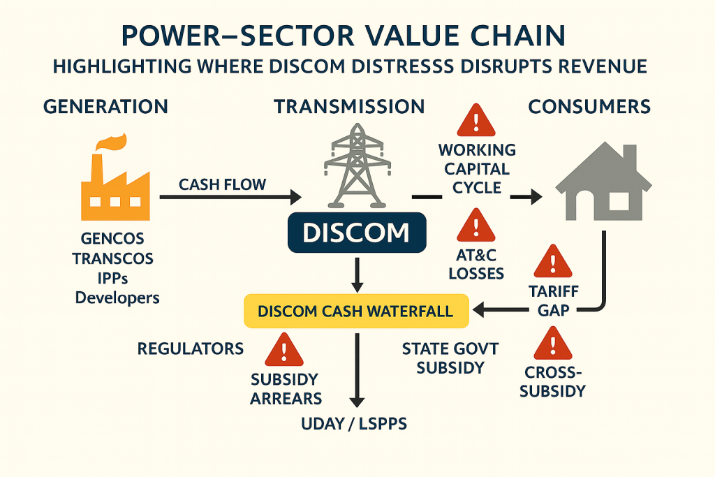 India’s clean-energy ambitions rest on a wobbly foundation. Power distribution companies, or DISCOMs, are drowning in ₹6.7 lakh crore of debt. When they delay payments to renewable developers, the whole chain suffers — projects stall, lenders panic, and the market loses faith.