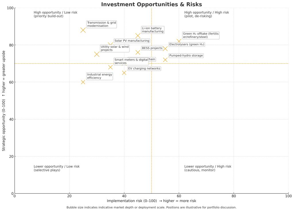 India’s policy also considers global energy geopolitics. With energy markets increasingly fragmented, supply chain volatility and geopolitical tensions are likely to influence domestic policy. By investing in green hydrogen, renewables, and storage, India reduces exposure to global shocks while positioning itself as a reliable clean energy partner in international markets.