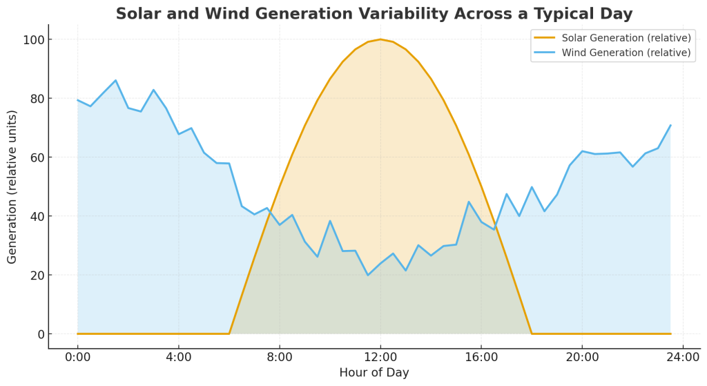 Renewable energy output fluctuates throughout the day, creating challenges for traditional grids