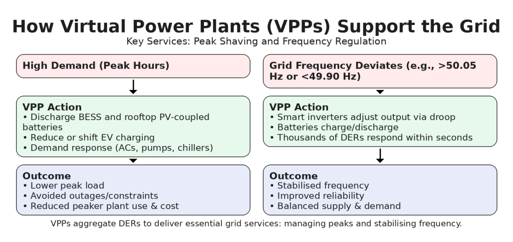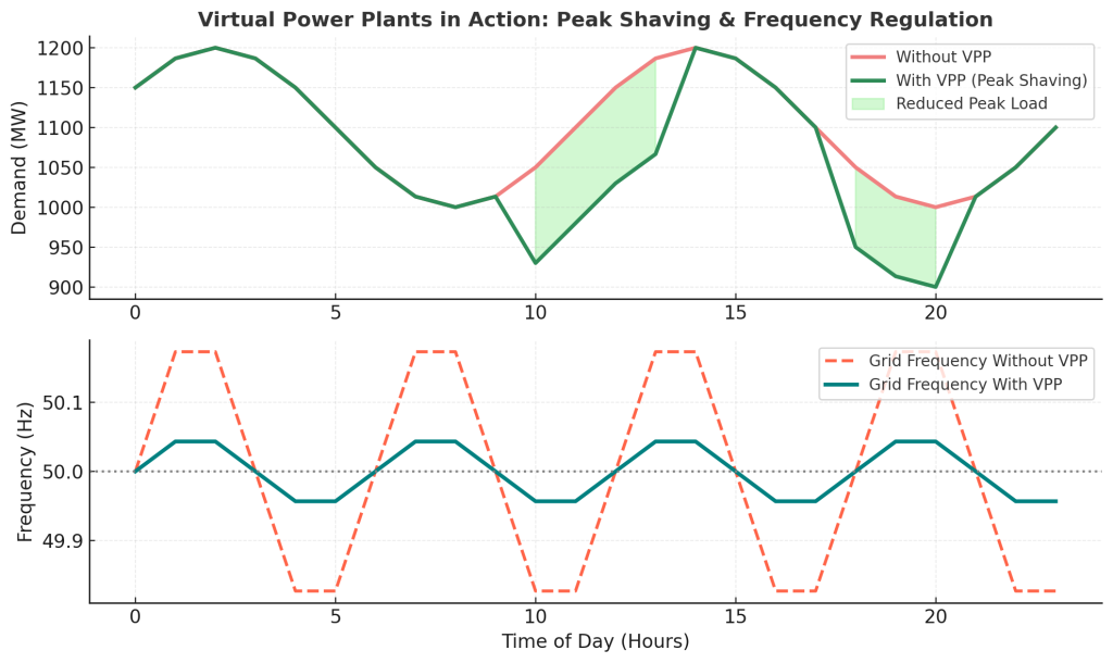 - Frequency Regulation: VPPs can stabilize grid frequency through: